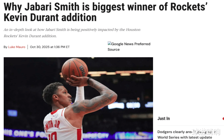 但申京并非火箭队8换1得到杜兰特最大受益者,美媒《clutchpoints》晒出两大理由认为小贾才是杜兰特加盟最大受益者。